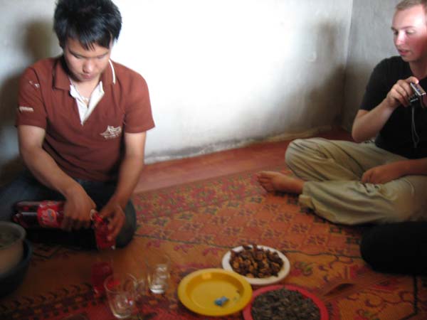In an open area of the village tents were put up and people brought all different kinds of food. After eating we spent some time relaxing indoors – talking and eating snacks.
