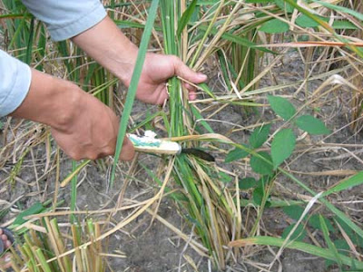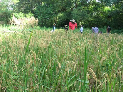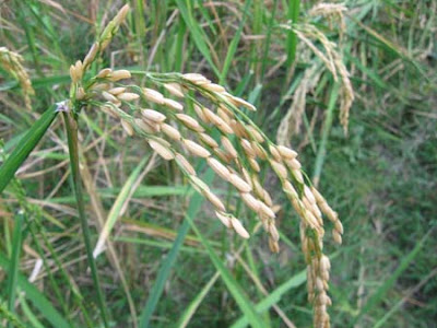 For such an important thing, I really didn’t know much about it. This year, though, we had a small amount of rice at the farm, so I was able to watch the process and help a little with the harvesting. I took some pictures to walk you through the process. At our farm we did dry rice, meaning that it was grown in a field instead of a rice paddy. I had hoped to have pictures of all the steps from planting to table, but our rice is not going to be eaten – it will be used for seed. I also missed the part where they beat the rice stalks – I think that would have been fun!