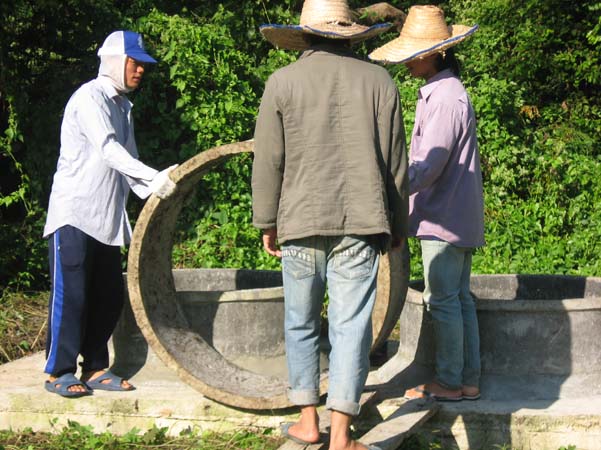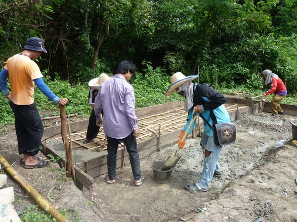 | Mixing the cement and putting in the foundation. |