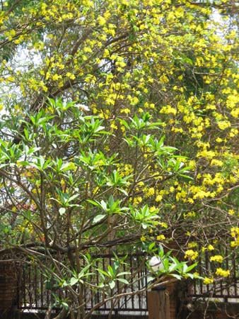 There are a couple flowers that I don’t have pictures of – beautiful orange flowers that drape over the fence and violet flowers on a tree near the gate. I also didn’t include potted flowers in these pictures.