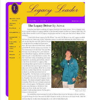 This past year has flown by and we just finalized our last issue of the Legacy Leader. We used a really interesting journalism book hosted here. It outlines the basics of writing articles and focuses on Southeast Asia. After learning about interviewing people, the students had to find someone to interview – and what better place to start than the employees of Legacy! This issue of the Legacy Leader incorporates those interviews along with submissions from the 2nd year English class.