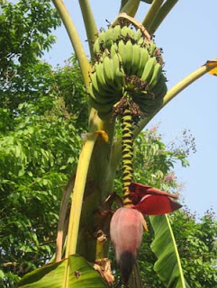 Unripe bananas and flower at the farm. In a couple weeks we will enjoy them! |