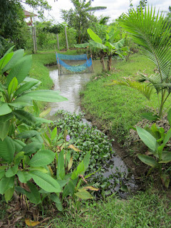 A canal fed by the local waterways channel through his 1-1/2 acre farm to